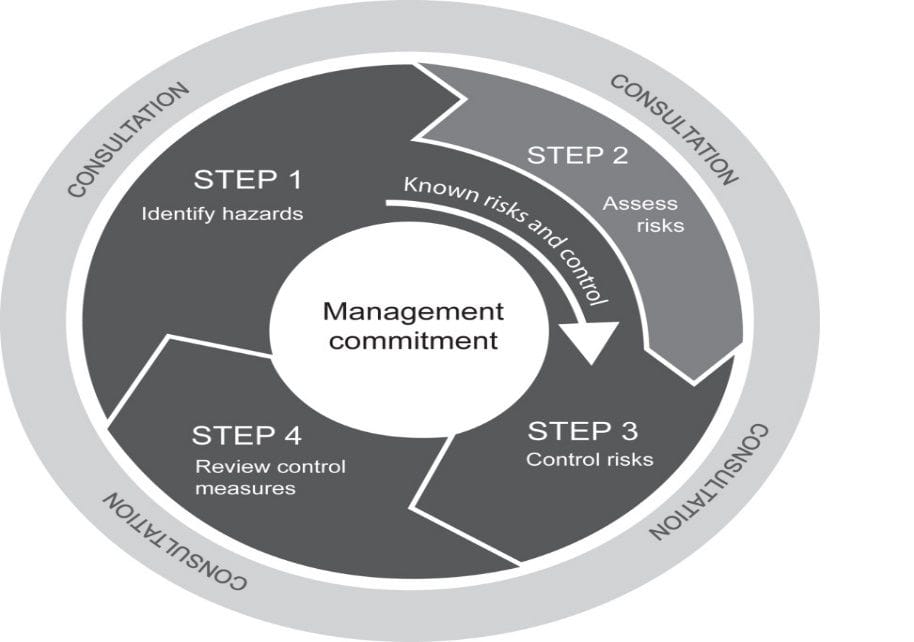 The risk management model below gives an overview of the whole process. The hierarchy of control is step 3 and is also referred to commonly as the fix!